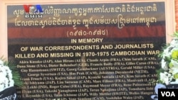 ភ្នំពេញ៖ អតីតអ្នកកាសែត អ្នកថតរូបនិងអ្នកឆ្លើយឆ្លងព័ត៌មានបរទេសដែលមានវ័យចំណាស់សរុបចំនួន២២រូបបានចូលរួមបើកសម្ពោធជាផ្លូវការនៅថ្ងៃអង្គារនេះនូវស្តូបរំឭកវិញ្ញាណក្ខន្ធអ្នកកាសែតដែលបានស្លាប់បាត់បង់ជីវិតក្នុងសង្គ្រាមនៅកម្ពុជាក្នុងទសវត្ស១៩៧០។