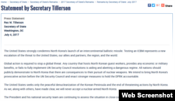 U.S. Secretary of State Rex Tillerson issued a statement confirming the North's missile test, which he says "represents a new escalation of the threat to the United States, our allies and partners, and the world."
