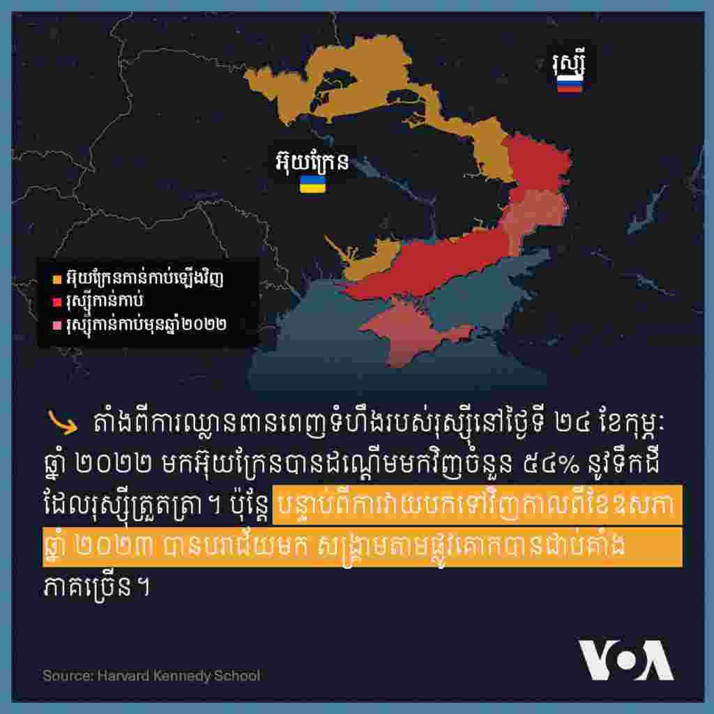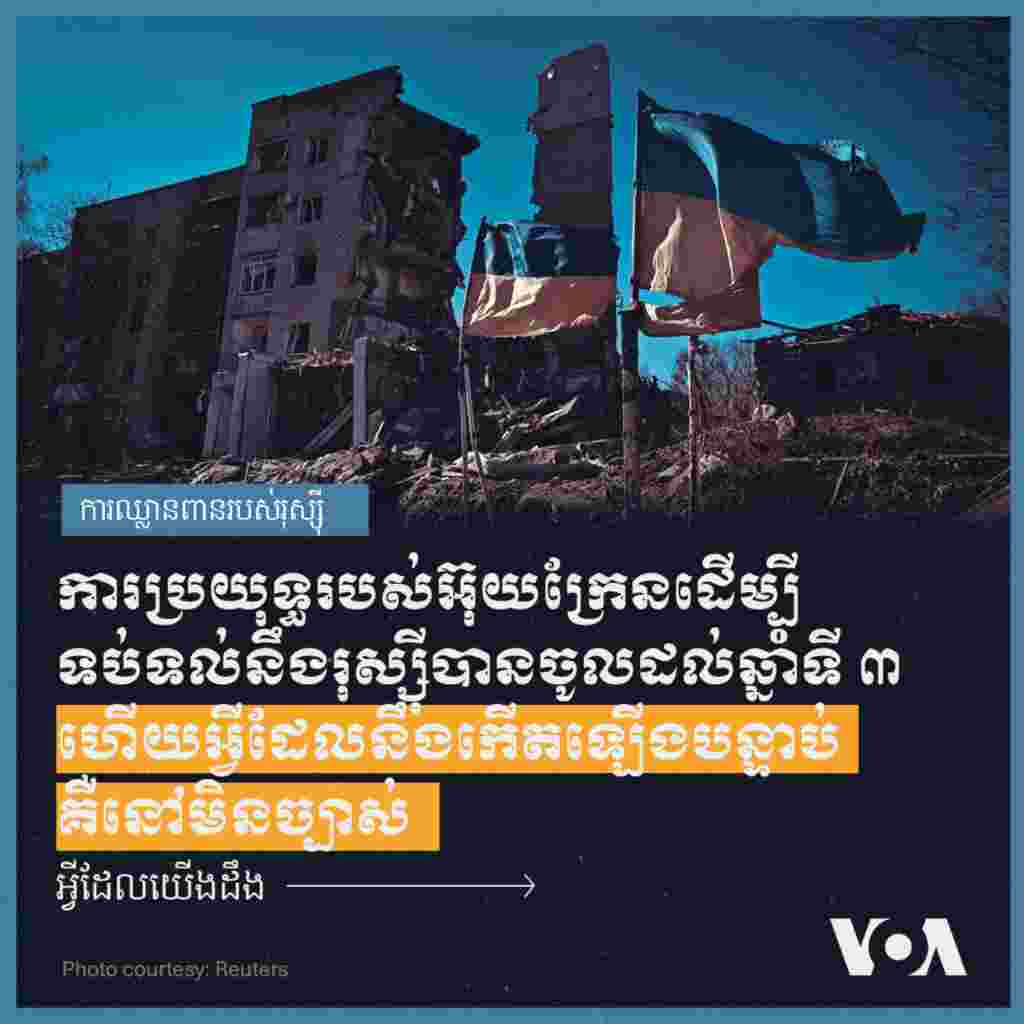 ប៉ុន្តែ ការចាប់ផ្ដើមនូវឆ្នាំទី ៣ នៃការឈ្លានពានរបស់រុស្ស៊ីនេះមានភាពស្រពិចស្រពិល បន្ទាប់ពីការវាយបកទៅវិញរបស់អ៊ុយក្រែននៅឆ្នាំ ២០២៣ មិនទទួលបានជោគជ័យ។ អ៊ុយក្រែនត្រូវការបន្ថែមទៀតនូវកងទ័ព កាំភ្លើងធំ និងគ្រាប់រំសេវ។ ការគាំទ្ររបស់សហរដ្ឋអាមេរិក ដែលនៅពេលនេះស្ថិតក្នុងភាពមិនច្បាស់ អាចកំណត់អនាគតរបស់អ៊ុយក្រែន៕